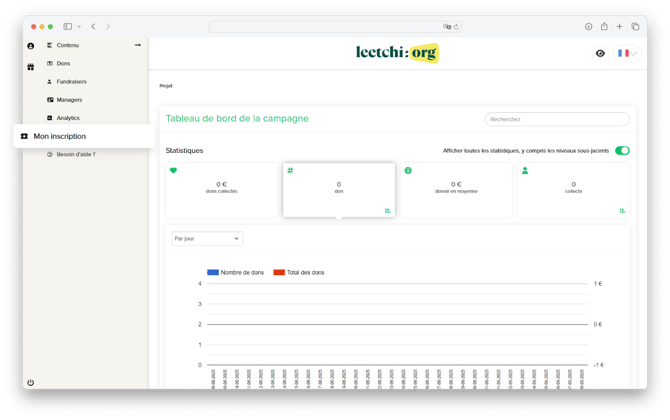 - Connectez-vous à votre tableau de bord Leetchi:org.